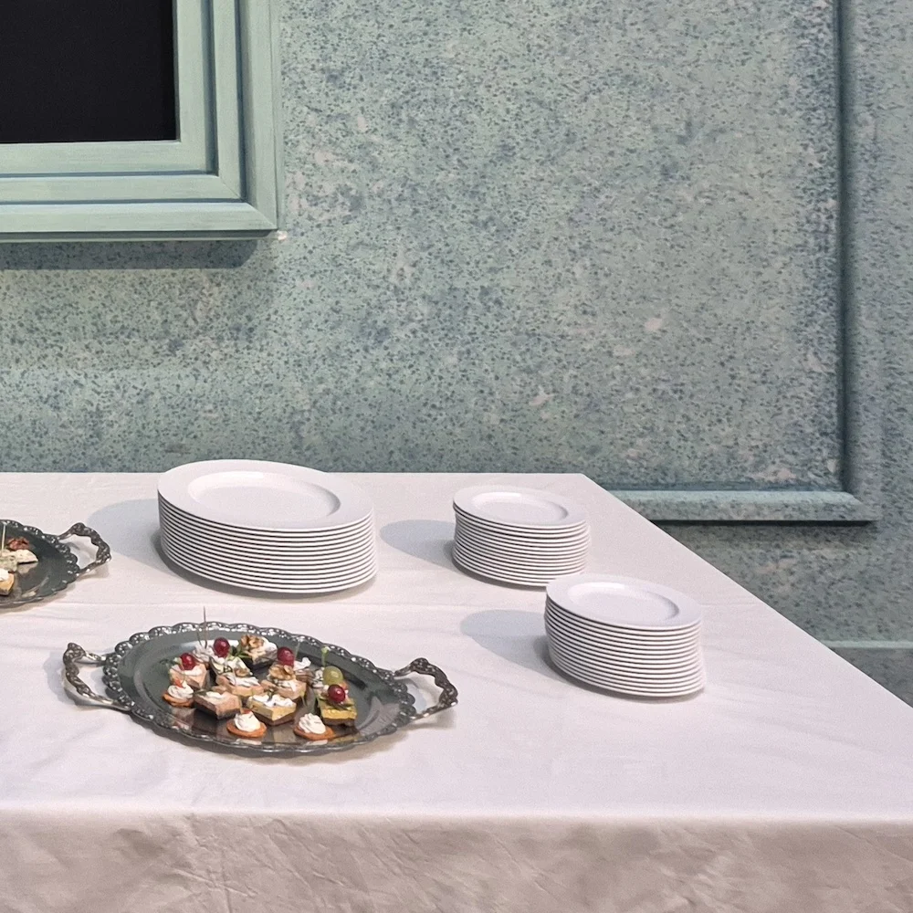 Safety is a top priority at Kiel Theatre - even on stage - because where there is commitment, things sometimes get rough. To minimise the risk of injury to the performers, only unbreakable tableware is used on stage. In the current production of the opera 'Buddenbrooks', ORNAMIN plates are used on the buffet table.