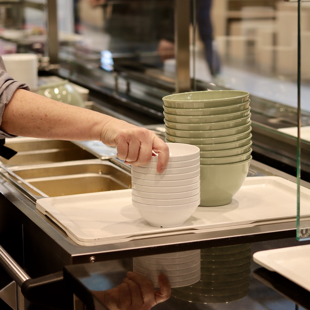 The reopening of the canteen in 2025 marks a new chapter: a new name, new spaces and a concept that combines functionality with comfort. Part of this is a tableware solution that makes everyday life noticeably easier. Reduced heat generation in the dishwashing area creates a pleasant climate and better working conditions. For guests and staff, the lightweight tableware means not only easy handling but also a calm, relaxed atmosphere.